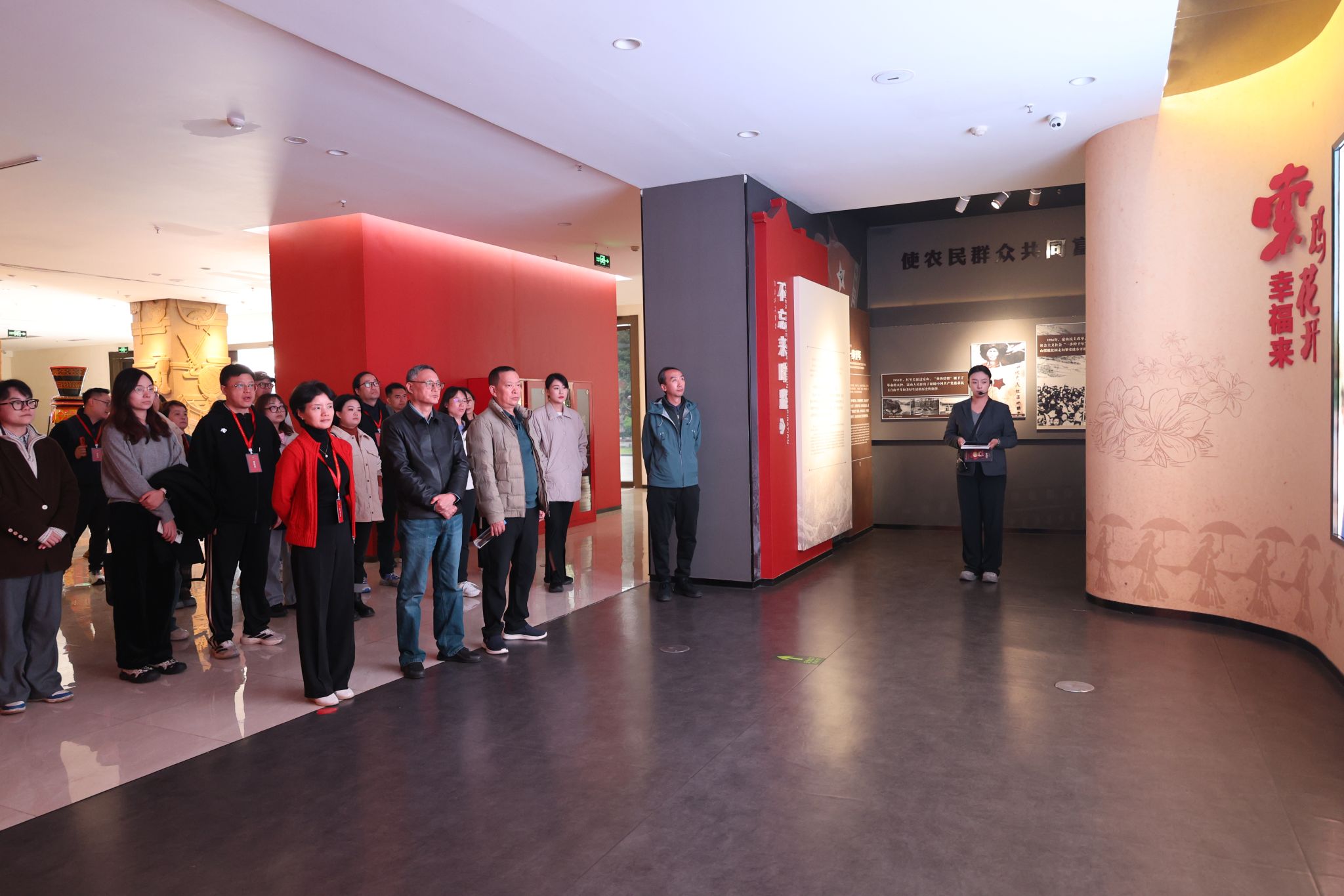 当日下午,培训转入发展实践课堂。学员们首先走进凉山州博物院,参观《索玛花开幸福来》主题展。展览通过详实的史料与实物,全景展现了凉山各族人民在党的领导下打赢脱贫攻坚战的壮阔史诗。从“贫中之贫”到“索玛花开”,这段奋斗历程深深震撼了每一位学员。